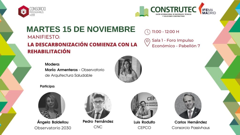 Fue en abril cuando el Consorcio Passivhaus-ECCN convocó al sector para la presentación del Manifiesto La descarbonización comienza con la rehabilitación y que supuso la adhesión de casi un centenar de entidades referentes del sector de la construcción. Ahora transcurridos más de seis meses, el Consorcio Passivhaus-ECCN organiza esta sesión que iniciará con una exposición sobre la evolución de los fondos Next Generation vinculados a la renovación de nuestro parque edificado.