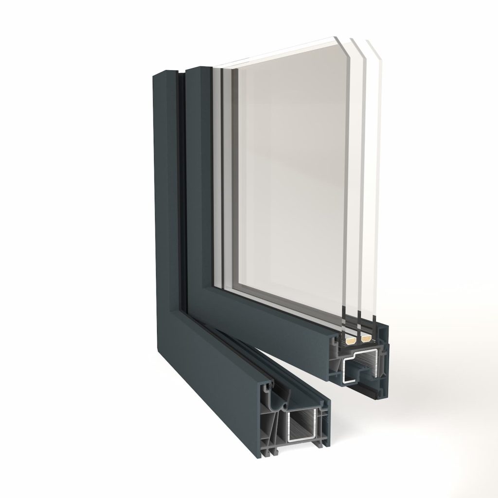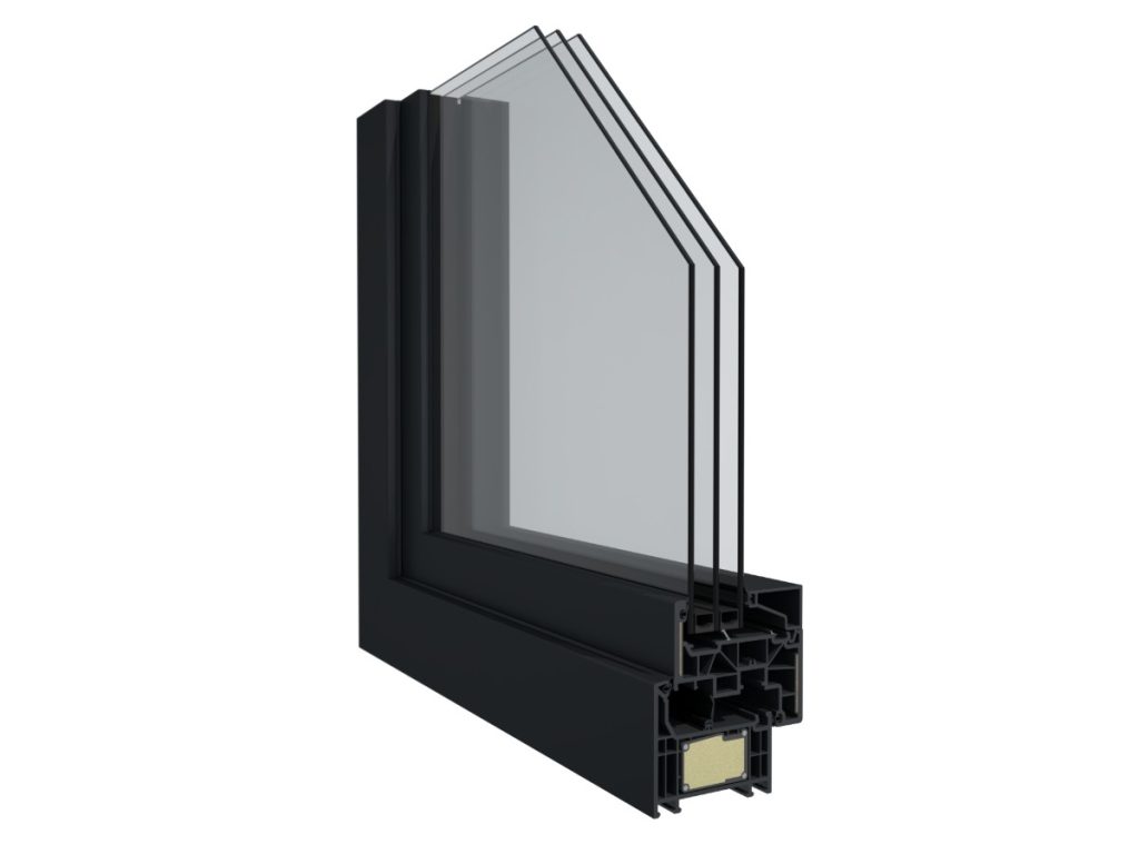 Sistema de perfiles de PVC desarrollados por GEALAN FENSTER-SYSTEME GMBH de 74mm de profundidad, con triple junta de estanqueidad, 6 cámaras, geometría totalmente rectilinea y moderna, hoja minimalista que permite mayor entrada de luz, disponible en blanco y texturado madera o colores lisos (foliado). Es el único sistema de PVC de gama 70mm con estas características y certificado como elemento idóneo para construcciones y viviendas de consumo casi nulo.